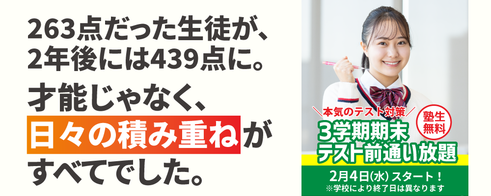 何のために塾に通うかという目的の大半は定期テストの点数を上げたい、志望校に合格したいということだと思います。